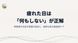はじめての方へ X Facebook はてブ LINE コピー 2026.01.22 リカバリーウェアが初めての方向けの記事をまとめました。Recovery Labを初めて訪れた方は、まずこちらから読むのがおすすめです。 「整う時間」がないあなたへ。30代から始める、罪悪感なく「自分を労る」新しい休息習慣「休むこと」に罪悪感を感じる忙しい30代女性へ。Recovery Labが考える「整う時間」と「自分を労る」本当の意味とは?明日もっと動ける自分になるための、睡眠環境の見直しや今日からできる3つの休息習慣をご紹介します。 【忙しい30代へ】「回復する時間がない」と嘆く前に。私がやめたこと・始めたこと「あ、もう朝?」アラームの音で現実に引き戻される瞬間、体が鉛のように重い。鏡を見ると、昨日よりも疲れが顔に出ている気がする……。仕事に家事、そして自分の時間。私たち30代の日々は、息つく暇もありません。「もっと寝たい」と願いながらも、口をつ... 【週末に倒れ込むあなたへ】疲れが溜まる原因とは?頑張らずに整う「70点の回復習慣」「週末は泥のように寝てしまう」あなたへ。疲れが溜まる原因は、脳疲労と寒暖差による自律神経の乱れかもしれません。30代に必要なのは、完璧さより「70点の回復習慣」。リカバリーウェアや隙間時間で整える、頑張らない休み方をRecovery Labが提案します。 疲れた日は「何もしない」が正解|罪悪感を手放す回復の技術と、限界な夜の最低限ケア疲れた日は「何もしない」が正解です。罪悪感を手放す回復の技術と、お風呂や食事が無理な限界な夜でもできる「最低限ケア」を3つ紹介。頑張るあなたが今夜安心して眠り、明日少しだけ体が軽くなるための休息法をお届けします。 ※記事は随時追加していきます。